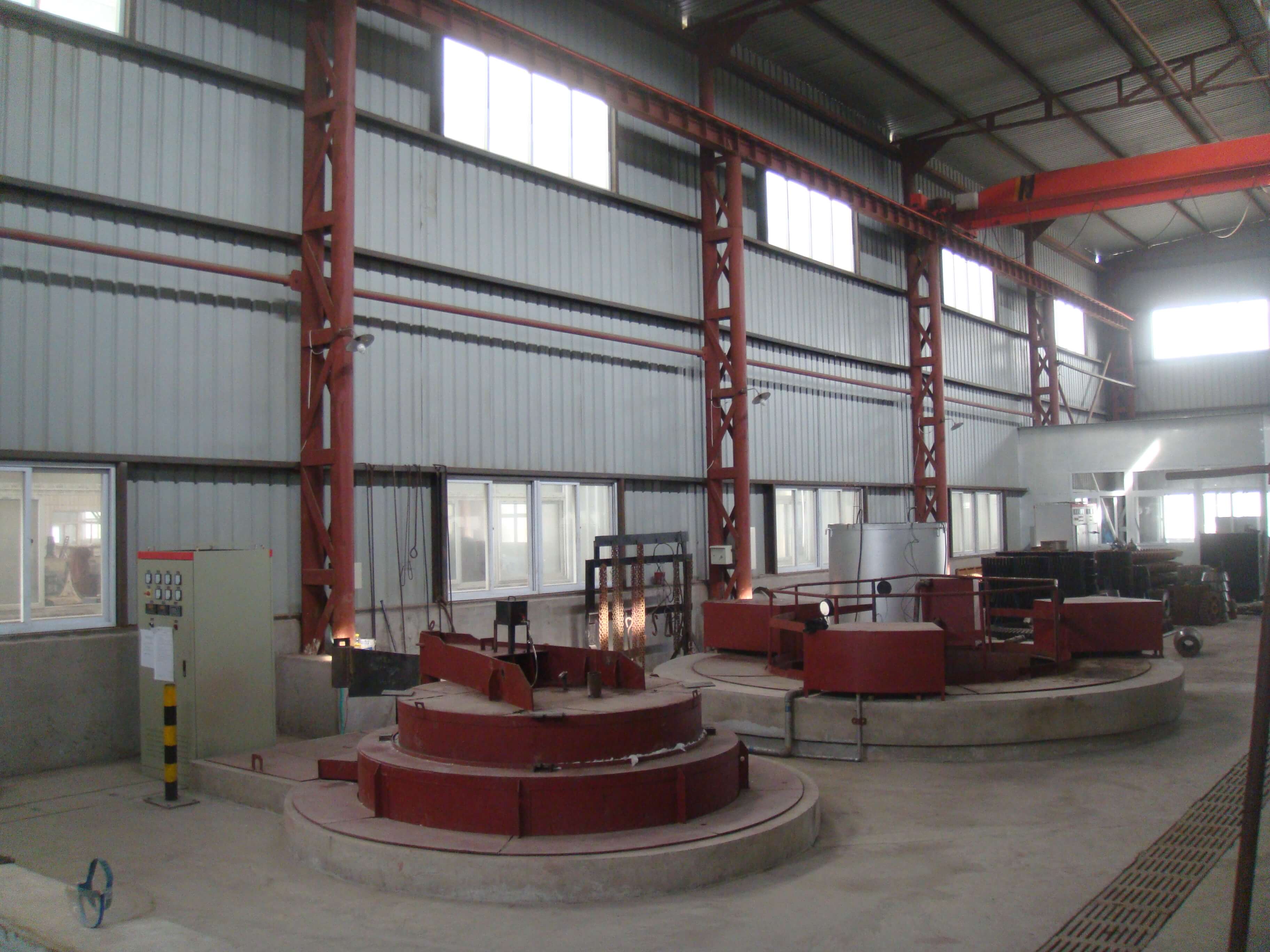 ,10t吊車2 臺。擁有CLCHL3600-400超音頻數控齒輪噴液淬火機1臺;RT3-2009-9全纖維爐襯臺車式電阻爐1臺;RJ3-180-11全纖維爐襯井式電阻爐1臺,J4-135-5不銹鋼爐襯回火爐1臺;180立方米淬火液槽3個...