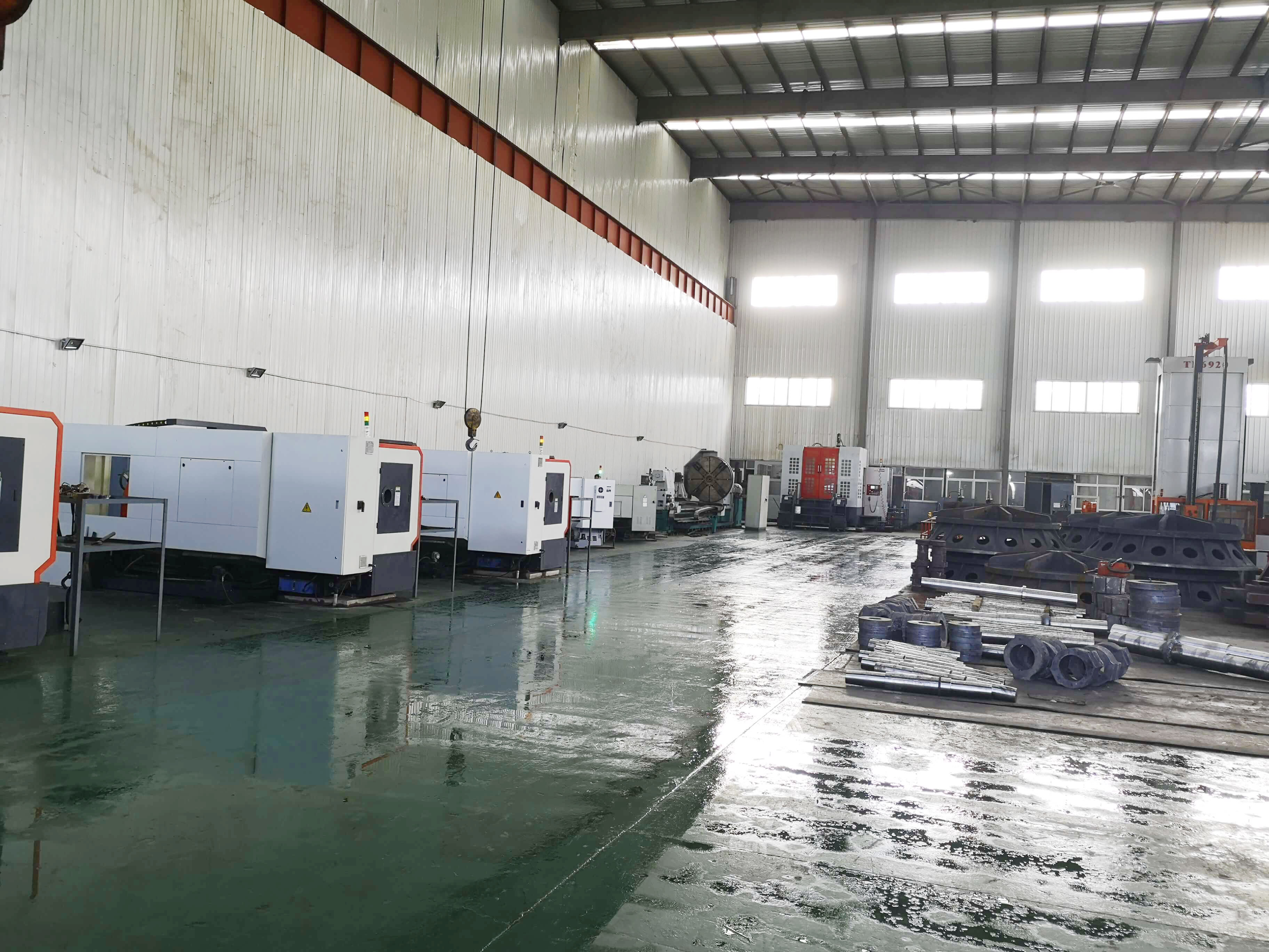 總建筑面積8290平方米,50t吊車(chē)2臺(tái),20t吊車(chē)1臺(tái),10t吊車(chē)5臺(tái)。擁有冷加工設(shè)備68臺(tái)套,包括TK6920-120-50重型數(shù)控落地銑鏜床,HC1200A臥式數(shù)控加工心,CKD61210/5000mm數(shù)控臥式車(chē)銑專(zhuān)機(jī)1臺(tái);12m×2.5m重型刨銑磨床1臺(tái);?200落地鏜床1臺(tái);TPX6113鏜床1臺(tái);T6111鏜床1臺(tái);立式車(chē)床4.0米、2.5米、1.25米、0.8米等10臺(tái);CAK系列數(shù)控車(chē)床6臺(tái)套;CW61100普車(chē)3臺(tái);CW6280B普車(chē)3臺(tái);滾齒機(jī)、插齒機(jī)、線切割、平面磨床等;